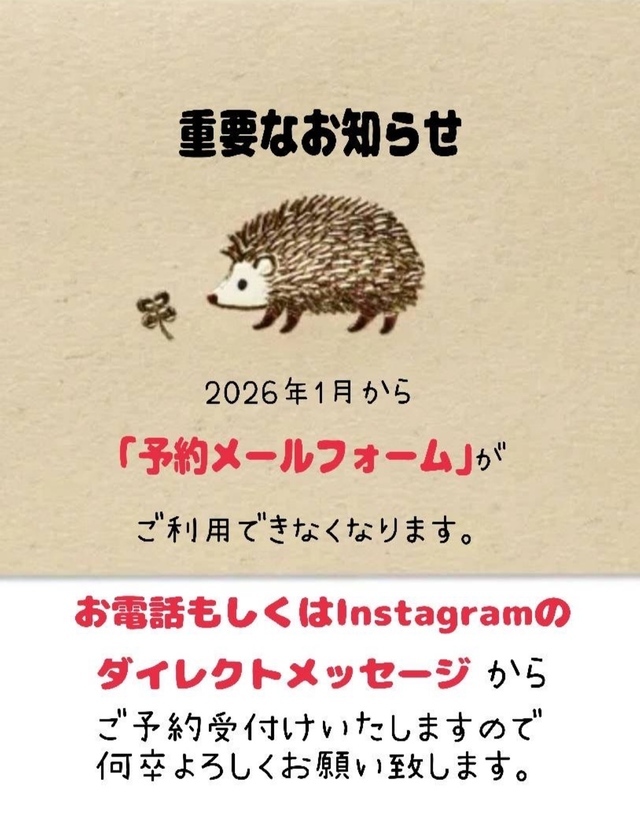 つきましては予約方法を、電話もしくはインスタグラムのメッセージに移行していただきますよう宜しくお願いいたします。