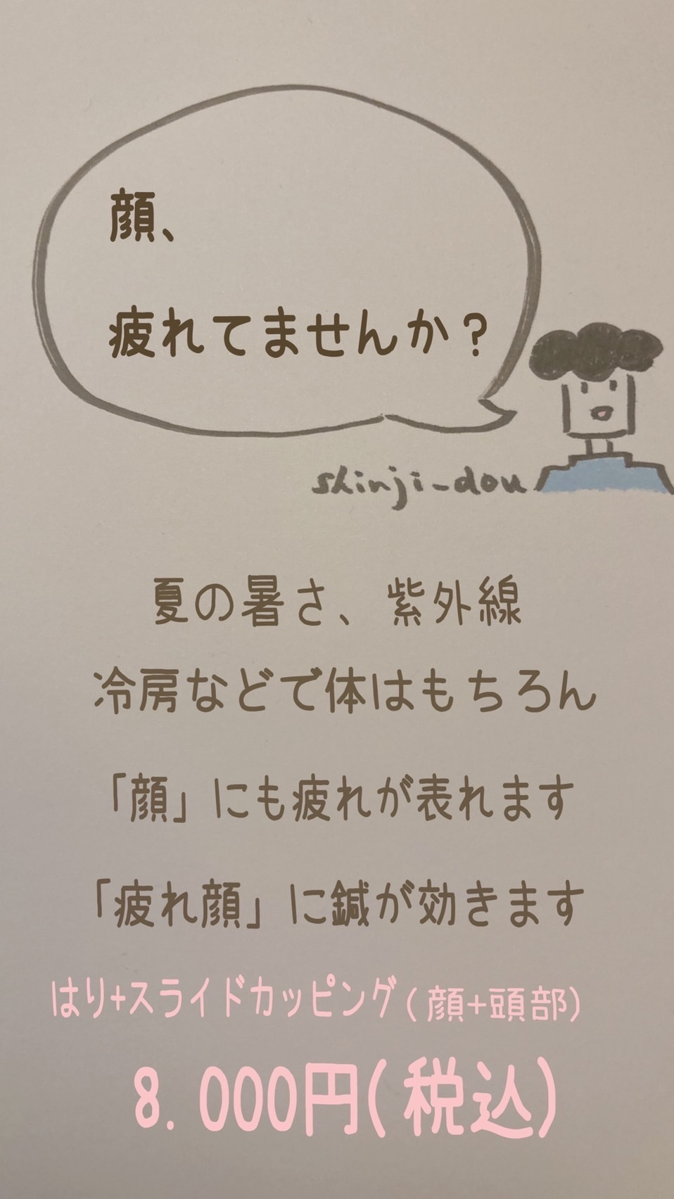 | スタンダード | お顔のみ | 施術時間 約40分 | 6.000円 (税込) |
